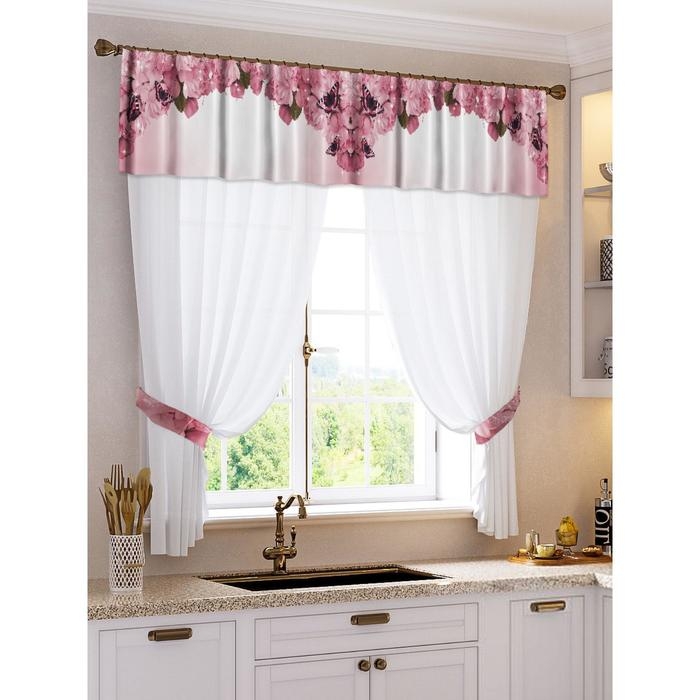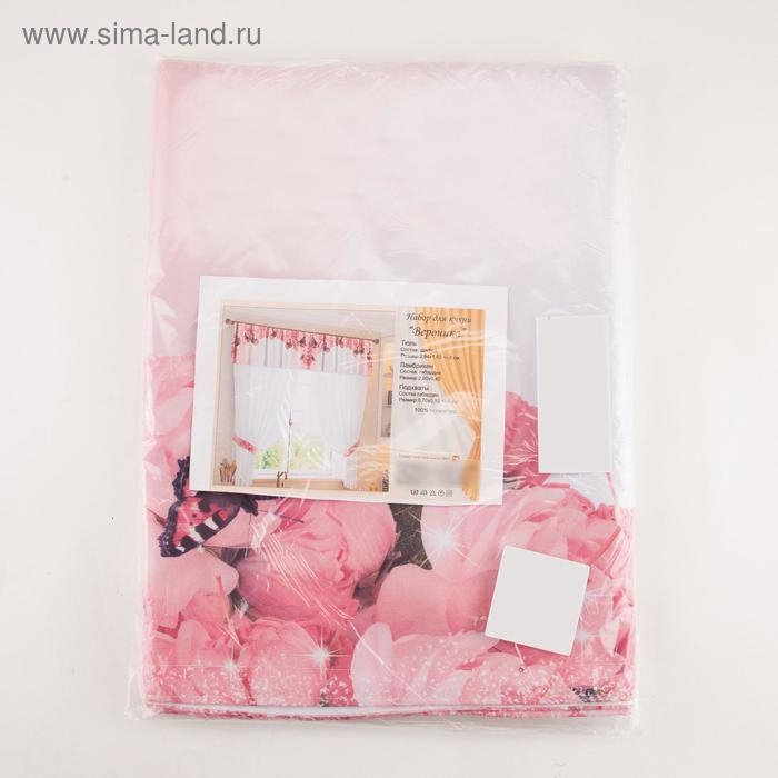 Комплект штор для кухни Вероника тюль (294х160см), ламбрекен (290х40 см), подхваты, пэ 100%