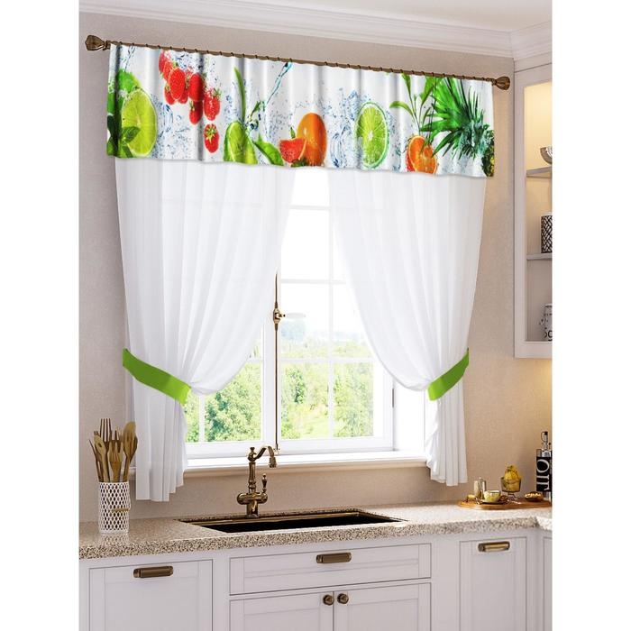 Комплект штор для кухни «Юна» тюль (294х160 см), ламбрекен (290х40 см), подхваты