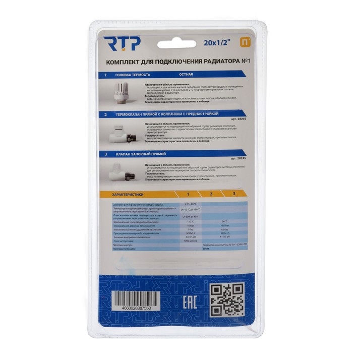 Комплект термостатический для радиатора RTP № 1, d=20 мм х 1/2", прямой
