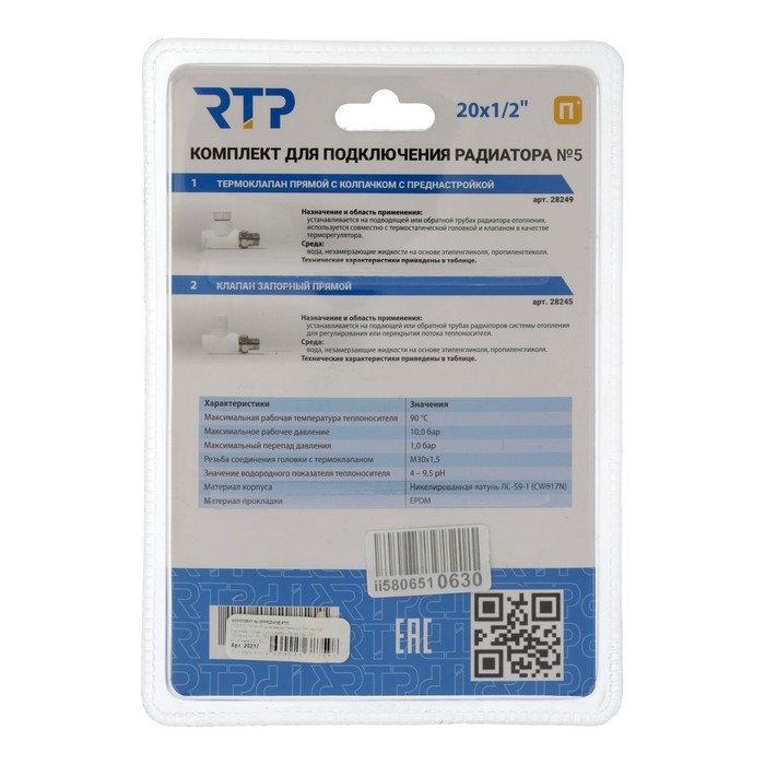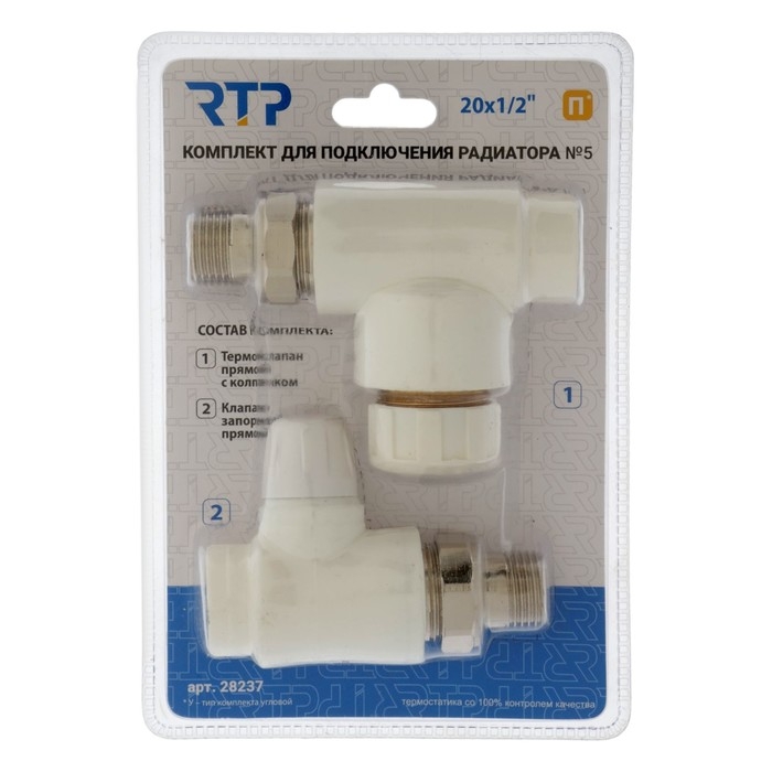 Комплект термостатический для радиатора RTP № 5, d=20 мм х 1/2", прямой