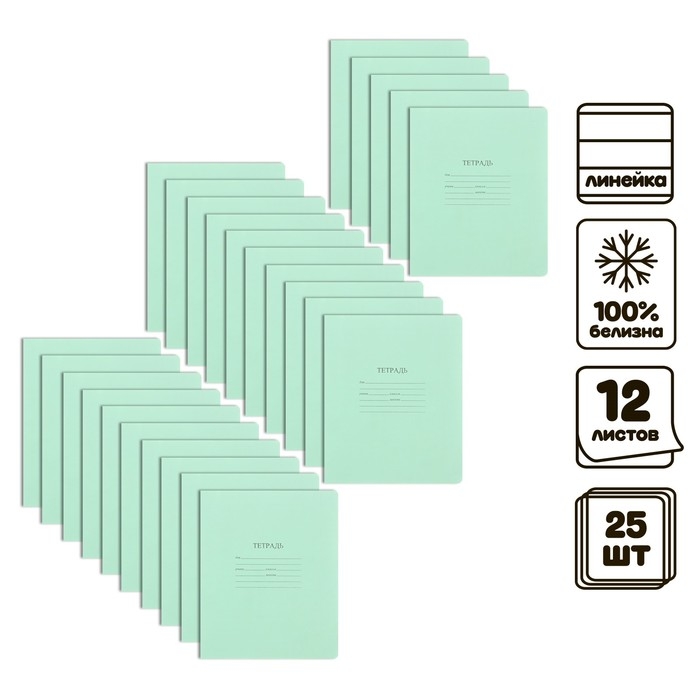 Комплект тетрадей из 25 штук, 12 листов в линию КФОБ "Зелёная обложка", с алфавитом, 60 г/м2, блок офсет, белизна 100%