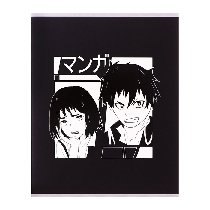Комплект тетрадей из 4 штук, 96 листов в клетку Calligrata "Аниме ч/б", обложка мелованный картон, матовая ламинация + выборочный УФ-лак, блок офсет