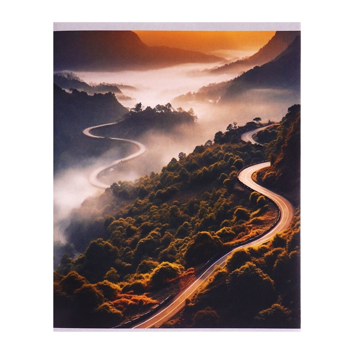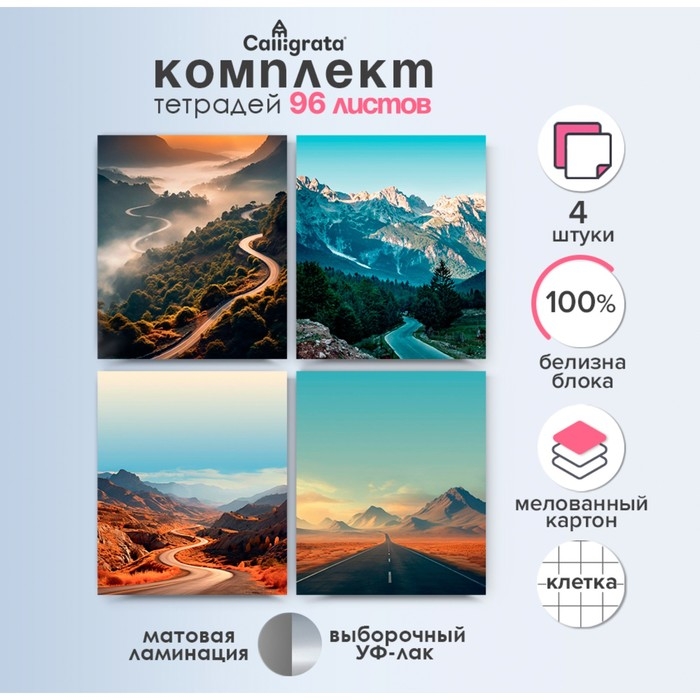 Комплект тетрадей из 4 штук, 96 листов в клетку Calligrata "Дорога в горах", обложка мелованный картон, матовая ламинация + выборочный УФ-лак, блок офсет