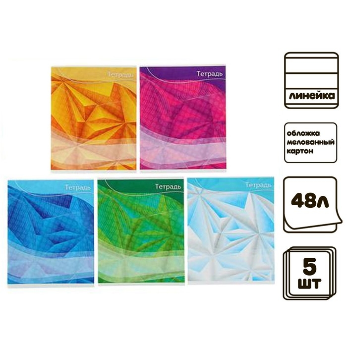 Комплект тетрадей из 5 штук, 48 листов в линию Calligrata "Графика-2", обложка мелованный картон, блок №2, белизна 75% (серые листы)
