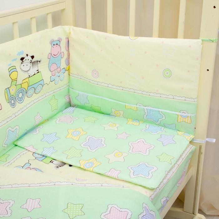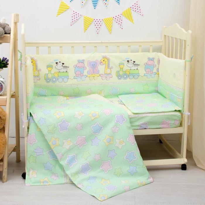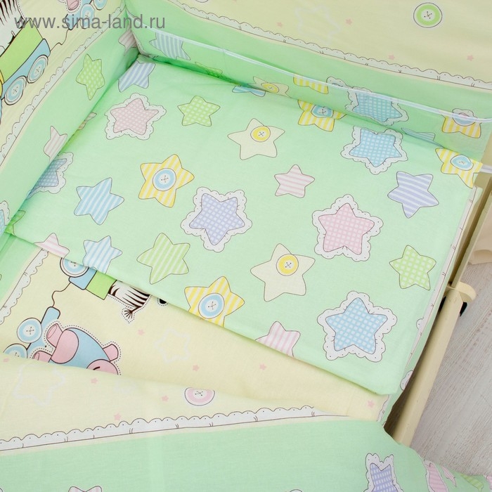 Комплект в кровать "Паровозик звёздочка" 6пр., зелёный, бязь/аэрофайбер, 120г/м, хл100%
