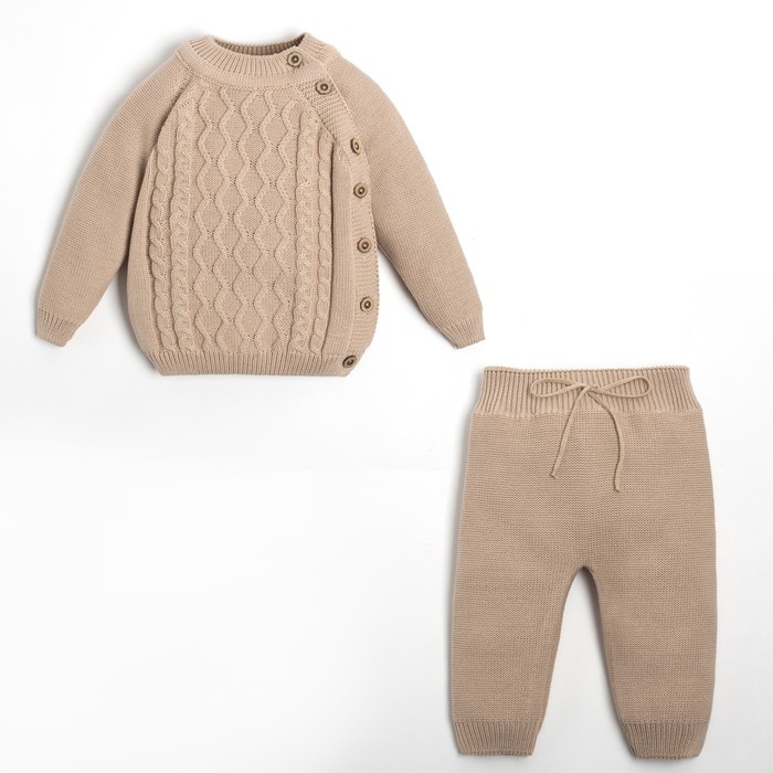 Комплект вязаный Крошка Я "Cute" рост 74-80 см, цвет бежевый