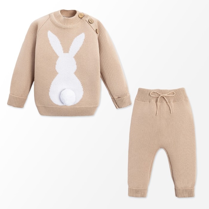 Комплект вязаный Крошка Я «Заяц» рост 80-86 см, цвет бежевый