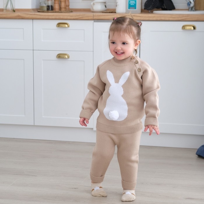 Комплект вязаный Крошка Я «Заяц» рост 86-92 см, цвет бежевый