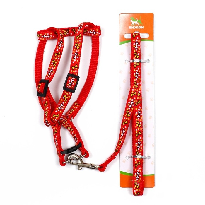 Комплект "Звёздные косточки", поводок 120 х 1 см, ОГ 23-35 см, красный
