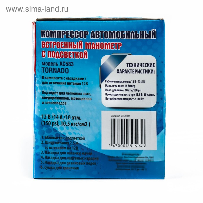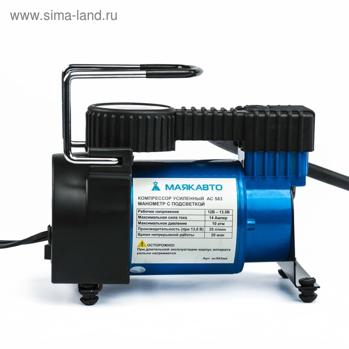 Компрессор автомобильный МАЯКАВТО АС-583ма c подсветкой манометра, 14 А, 35 л/мин, 12 В, 10 Атм/150PSI