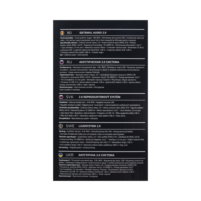 Акустическая система DEFENDER Aurora S8 подключается напрямую к компьютеру и не требует дополнительного питания от электросети. Устройство порадует пользователя мощным насыщенным звуком. С регулятор громкости на кабеле вам не придется переключаться на управление компьютером, чтобы отрегулировать уровень громкости.