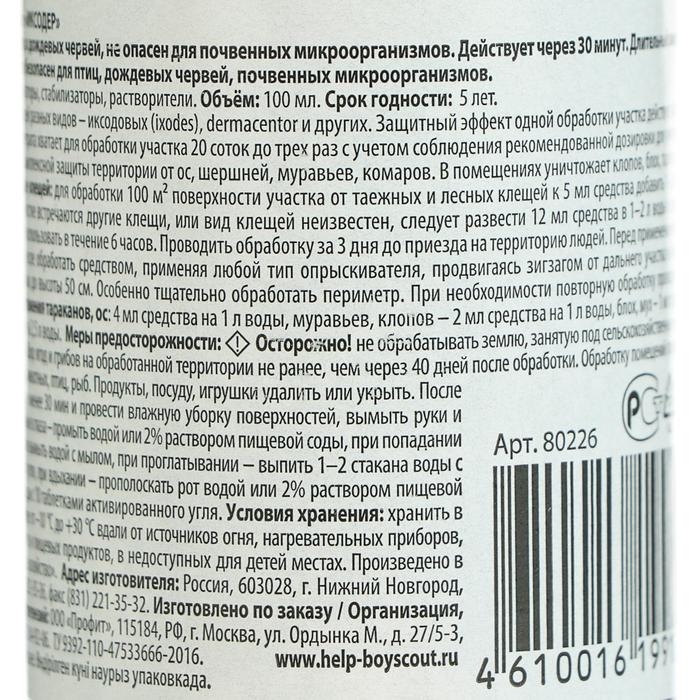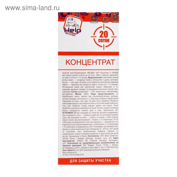Концентрат от клещей "Help", для защиты дачного участка, 100 мл