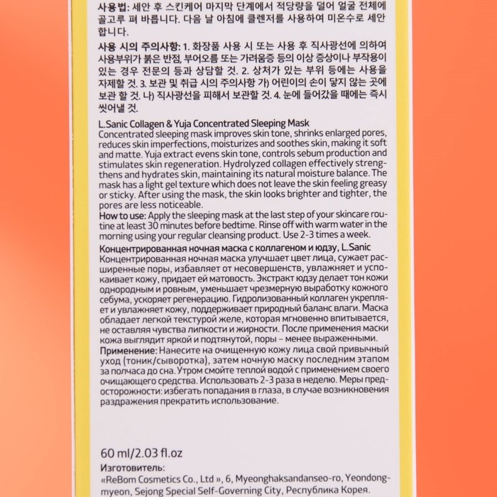 Концентрированная ночная маска "L.Sanic" с коллагеном и юдзу, 60 мл
