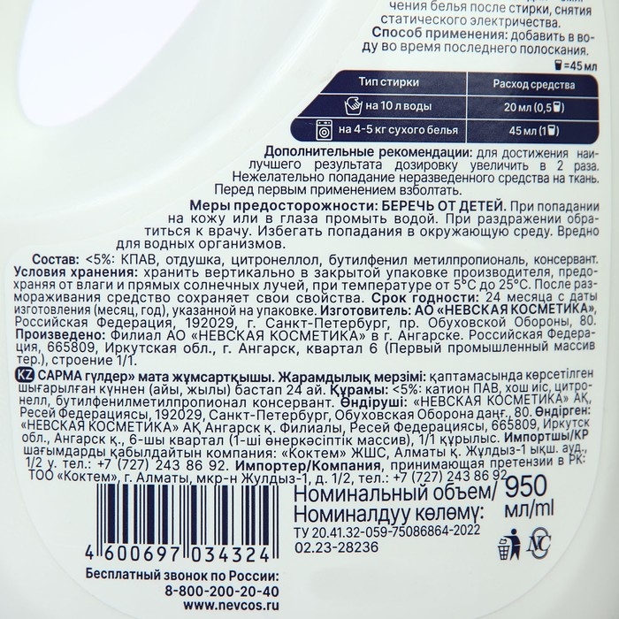 Кондиционер для белья Sarma с цветочным ароматом, 950 мл