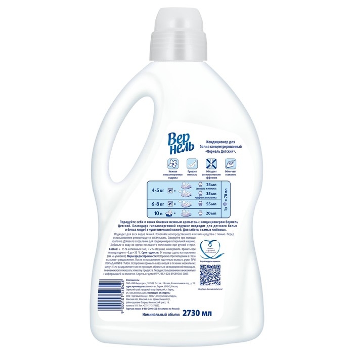 Кондиционер для белья Vernel «Детский», 2.73 л