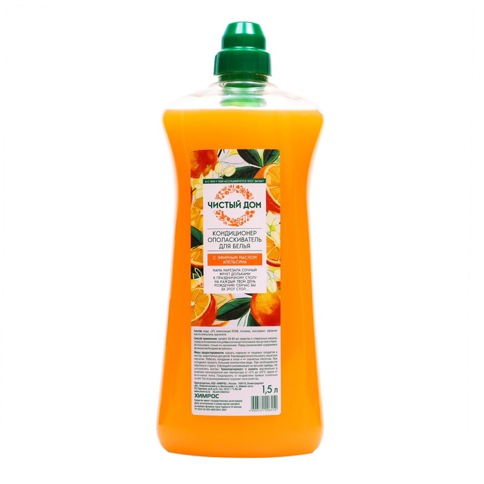 Выбирайте кондиционер-ополаскиватель для белья Чистый дом "Апельсин" — и пусть ваше белье всегда сияет чистотой и свежестью, а аромат апельсина дарит вам ощущение тепла и радости!