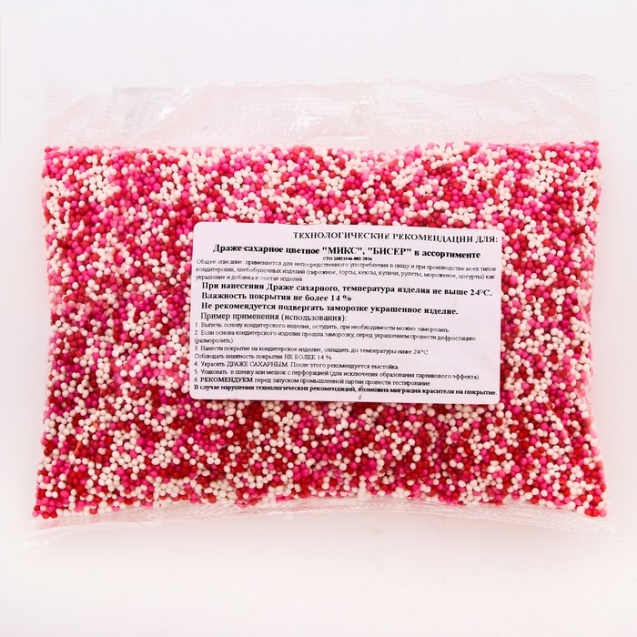 Кондитерская посыпка с мягким центром "Бисер": розовая, красная, серебряная, 500 г