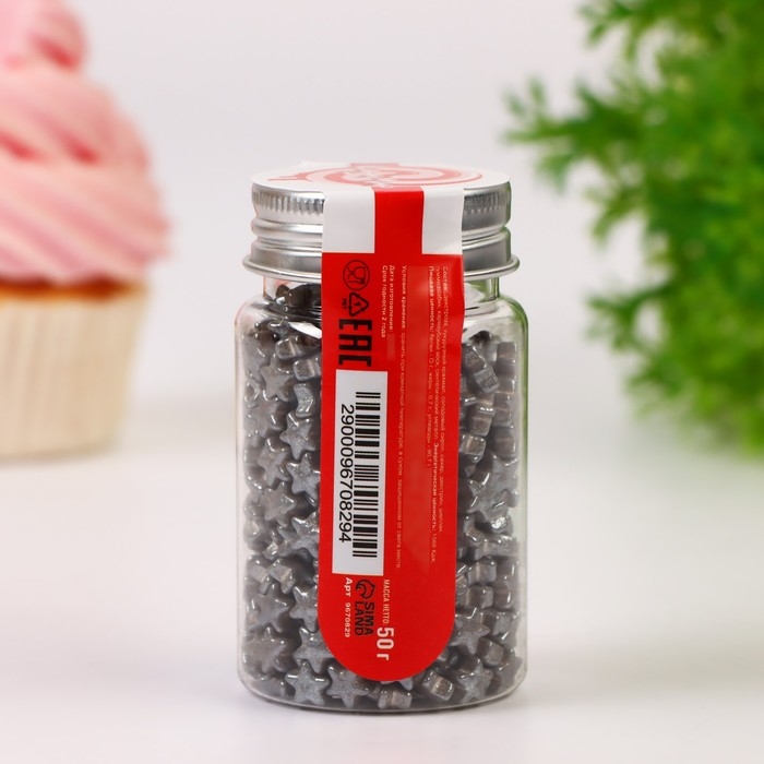Кондитерская посыпка "Звезда малая" серая, 50 г