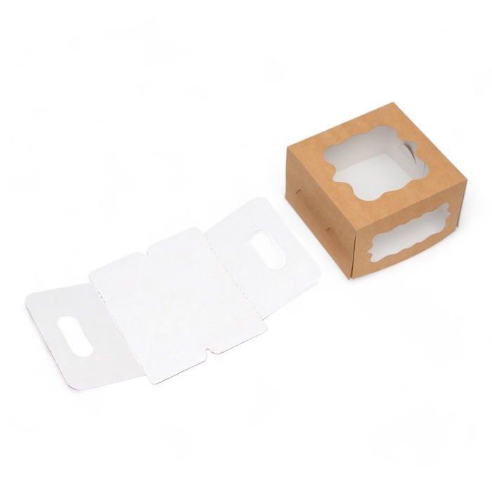 Коробка под торт 3 окна, с ручками, белая, 30 х 30 х 20 см