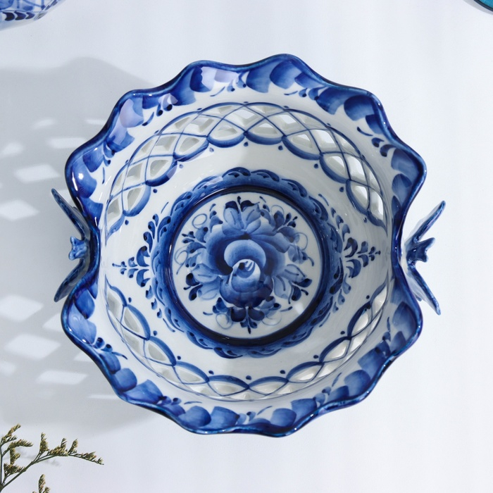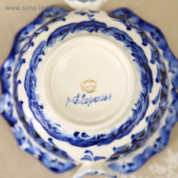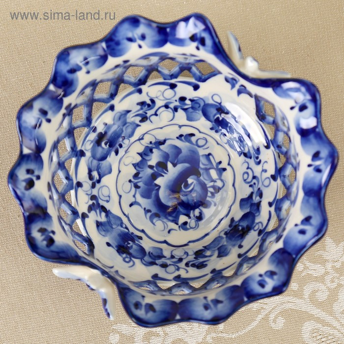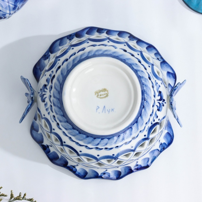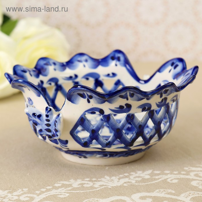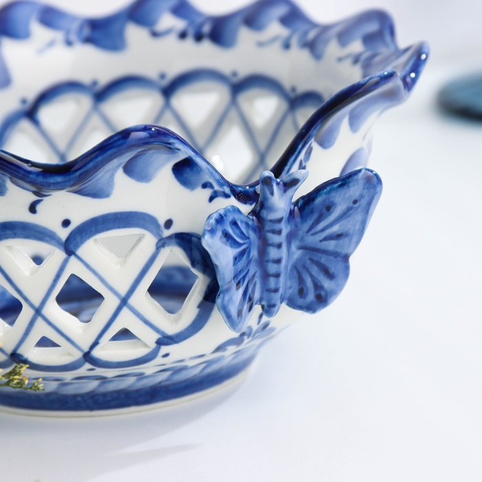 Конфетница «Бабочки», 15×15×8 см, ажурная, гжель