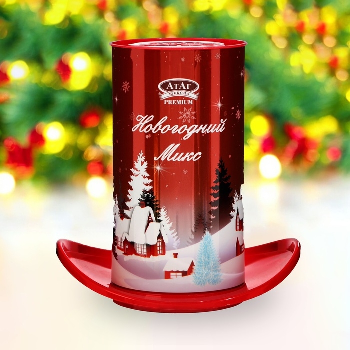 Дизайн упаковки в форме новогоднего цилиндра не только защищает сладости, но и добавляет им особую праздничную привлекательность. Такой подарок идеально подойдет для друзей, коллег и близких, подчеркивая торжественность момента и создавая теплую атмосферу. Конфеты "Новогодний микс" — это сочетание вкуса и стиля, которое прекрасно дополняет зимние праздники и делает их еще более радостными. Этот новогодний цилиндр с шоколадными конфетами станет отличным дополнением к любому праздничному событию, радуя глаз и вкус.
