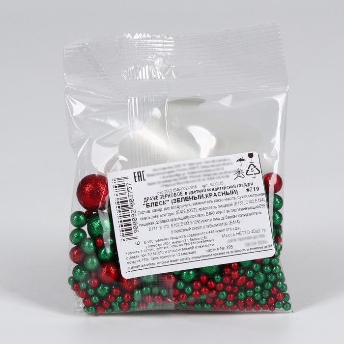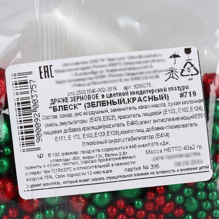 KONFINETTA Кондитерская посыпка глиттером «Сказочный новый год» мягкая: красный и зелёный, 40 г.