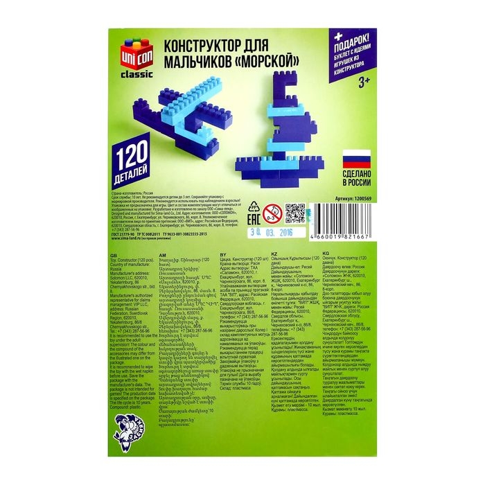 Товар разработан и произведён в России из российских материалов и соответствует всем ГОСТам. Строгий контроль на всех этапах, начиная от производства, заканчивая упаковкой товара, исключает брак и делает конструктор действительно качественным. Имеет сертификат соответствия ЕАС.