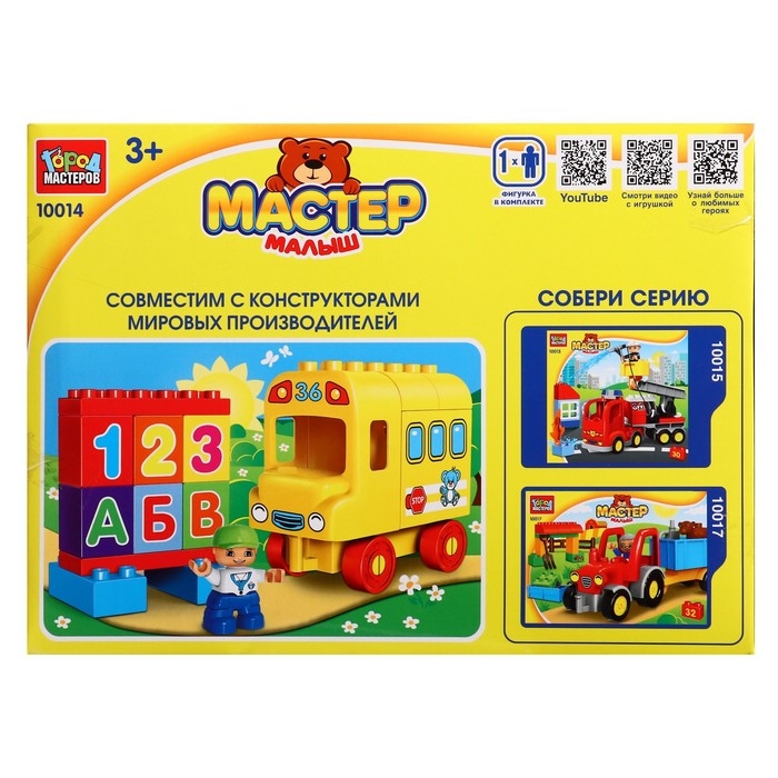 Конструктор «Автобус с буквами и цифрами», большие кубики, 21 деталь
