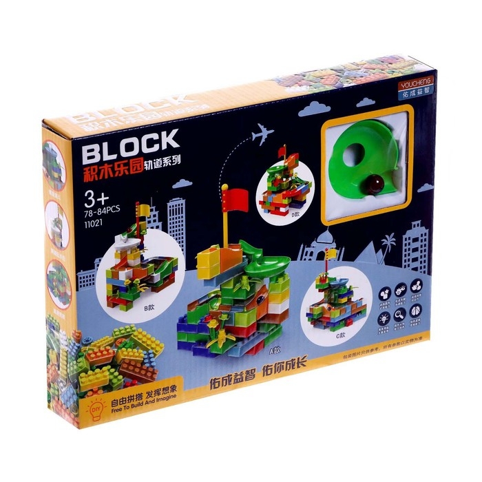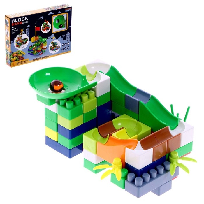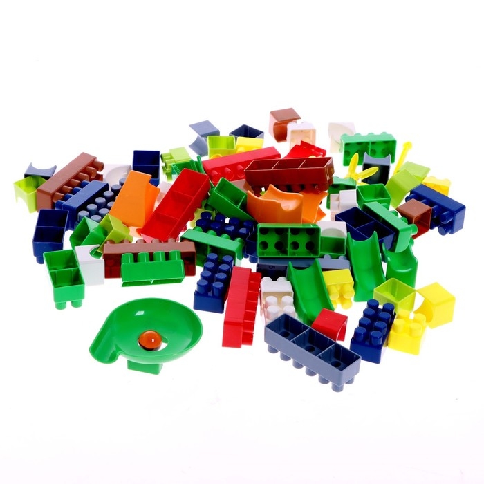 Набор состоит блочных элементов, разноцветных мостиков и извилистых дорожек. Малыш без труда соорудит трассу любой длины и сложности и будет следить за перемещениями шариков.