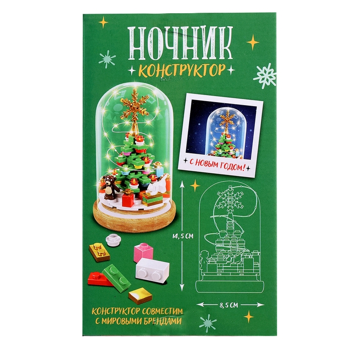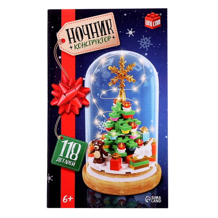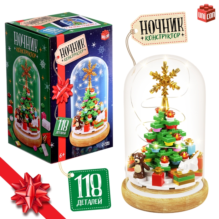 Конструктор блочный ночник «Ёлочка», 118 деталей, с гирляндой