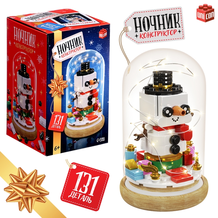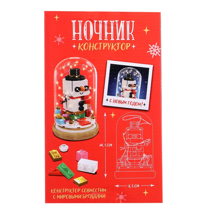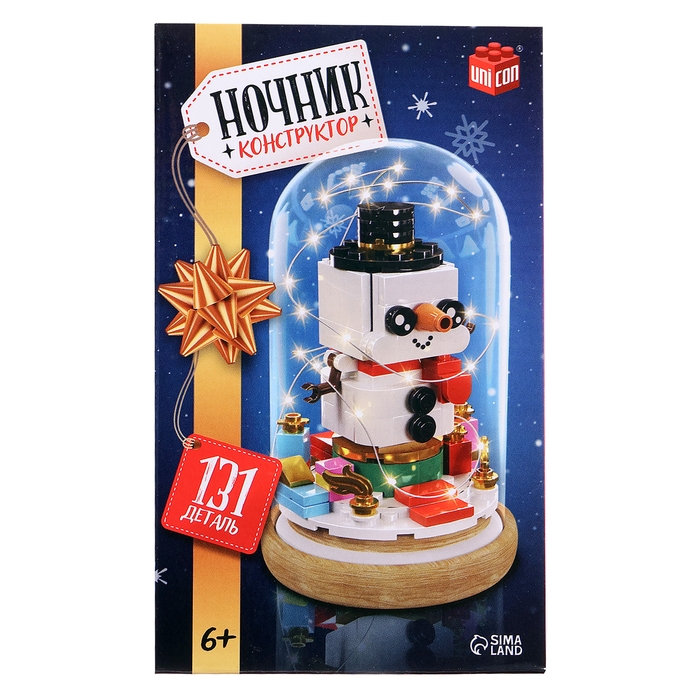 Конструктор блочный ночник «Снеговик», 131 деталь, с гирляндой