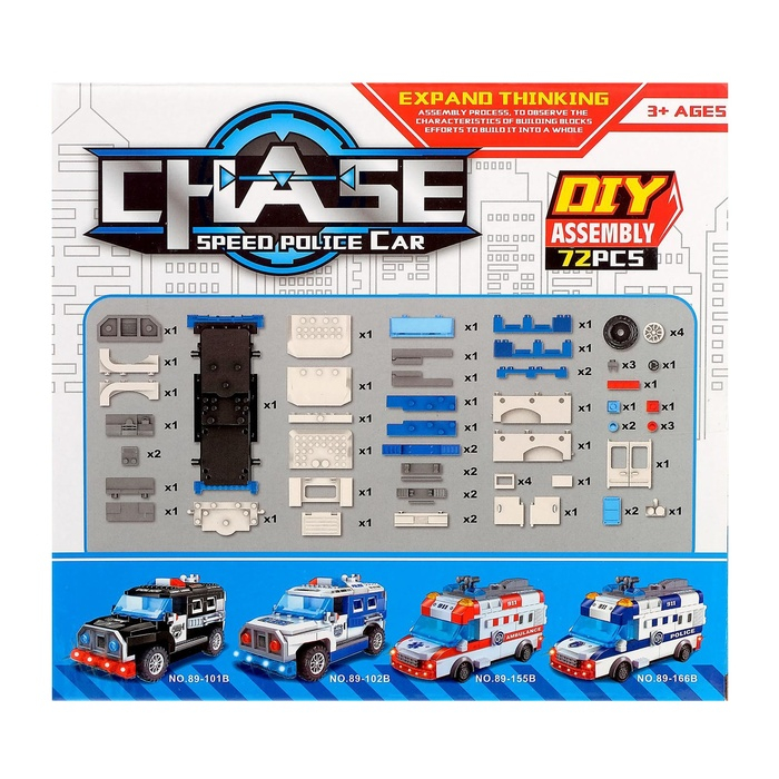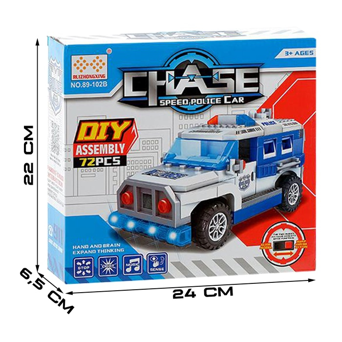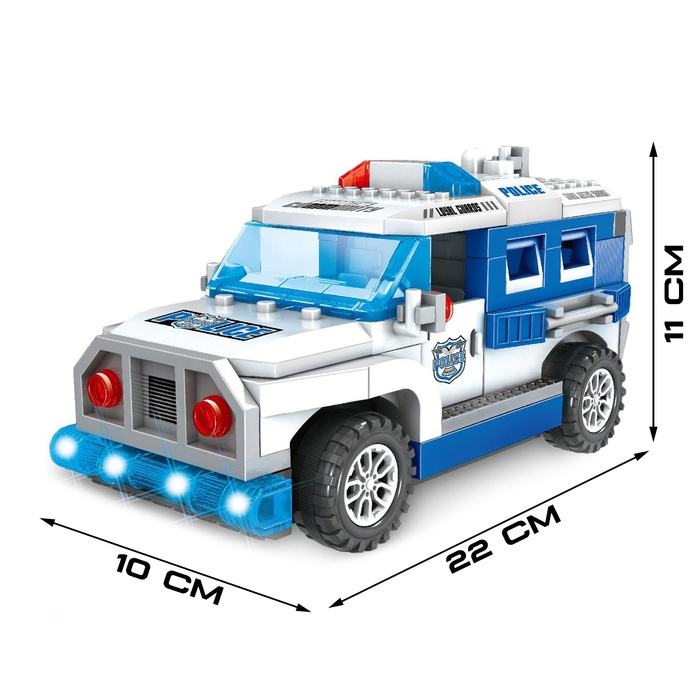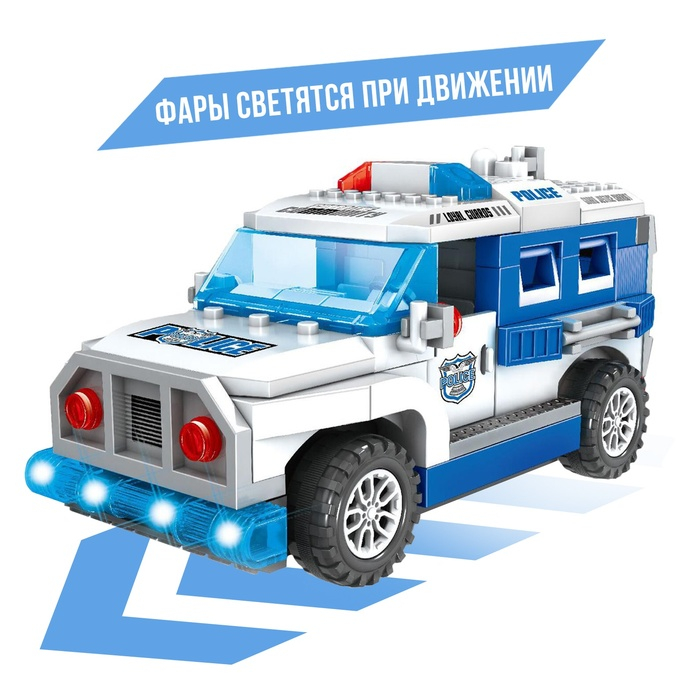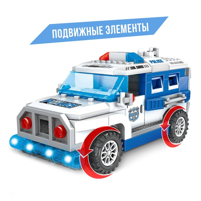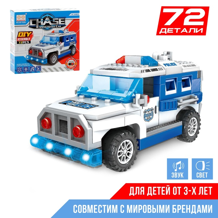Конструктор блочный «Полицейский джип», световые и звуковые эффекты, ездит, 72 детали