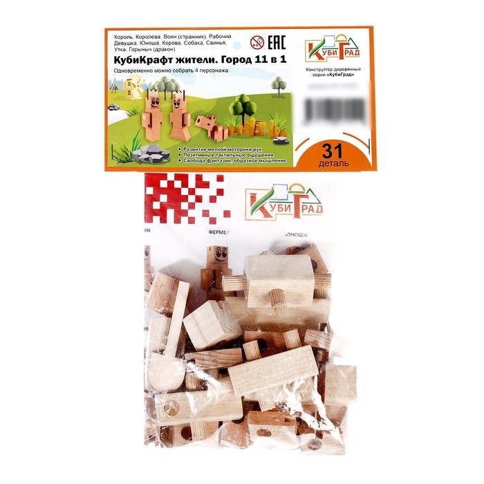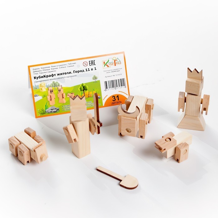 Конструктор деревянный «КубиГрад», «КубиКрафт жители. Город 11 в 1»