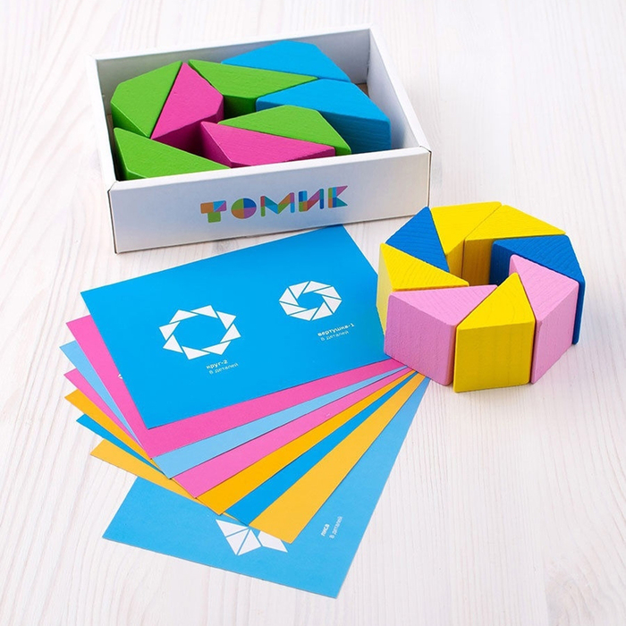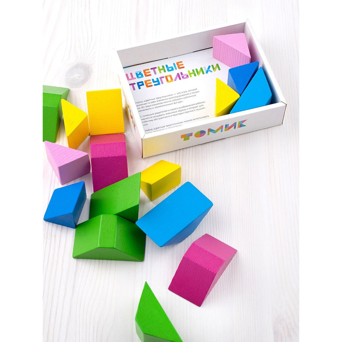 Конструктор деревянный «Треугольники Цветные»,16 элементов, 8 карточек с заданиями