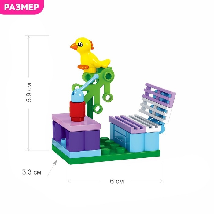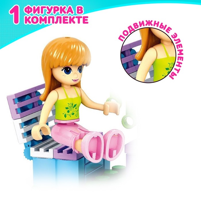 Устройте незабываемый отдых и наслаждайтесь спокойствием с конструктором серии «Девчонки». Из 36 деталей набора малышка соберёт скамейку со столиком и будет наслаждаться звуками природы в компании весёлых попугаев. Разнообразные элементы пробудят воображение ребёнка — девочка придумает множество ярких сюжетов в уютном парке.