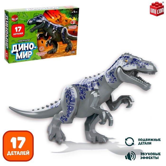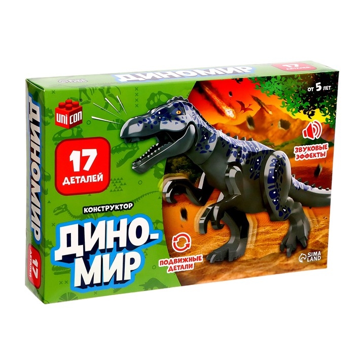 С конструктором «Диномир» ребёнок соберёт подвижную модель динозавра со звуковыми эффектами и окунётся в захватывающий мир доисторических гигантов!