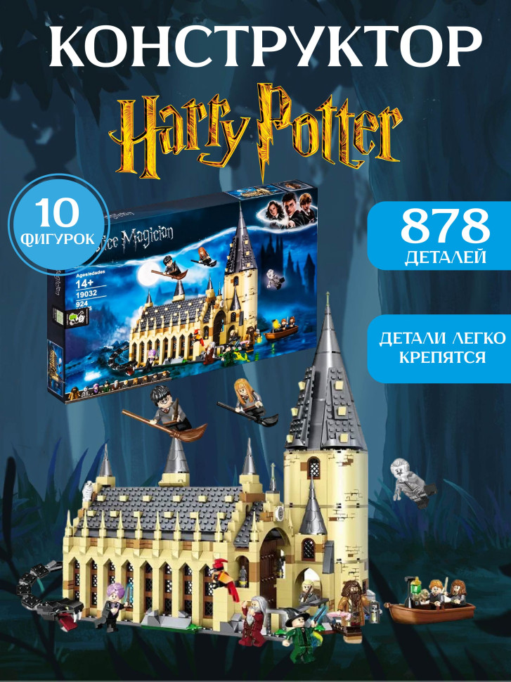 Конструктор Гарри Поттер: Большой зал Хогвартса 878 деталей 10 минифигурок