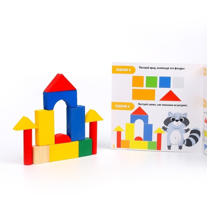 - С набором можно строить городки, замки, крепости, изучать цвета и формы.
