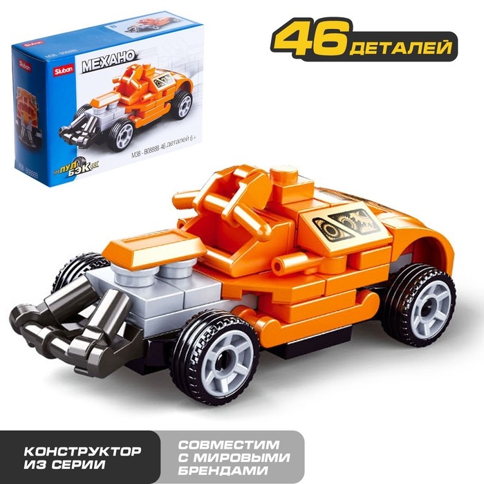 Конструктор инерционный Механо «Тачки», 46 деталей цвет оранжевый