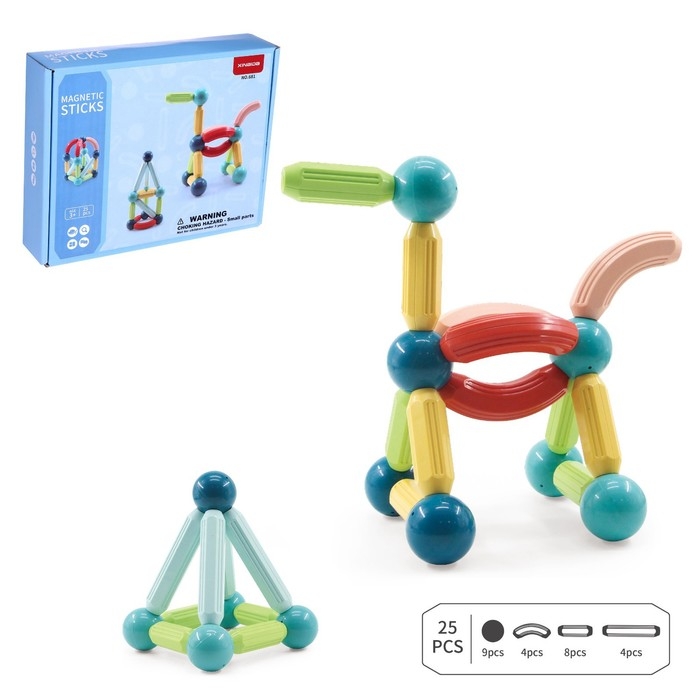 Конструктор магнитный для малышей «Магические палочки», 25 деталей