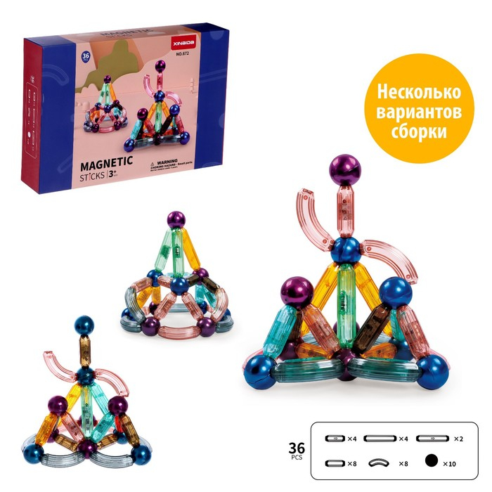 Конструктор магнитный для малышей «Магические палочки», 36 деталей