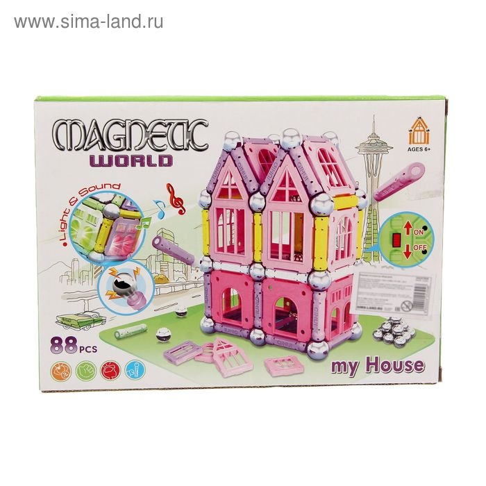 Конструктор магнитный «Дом», световые и звуковые эффекты, 88 деталей