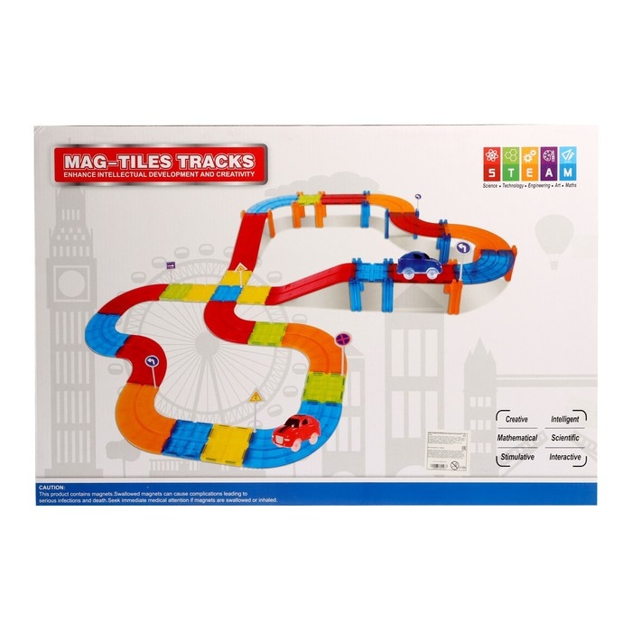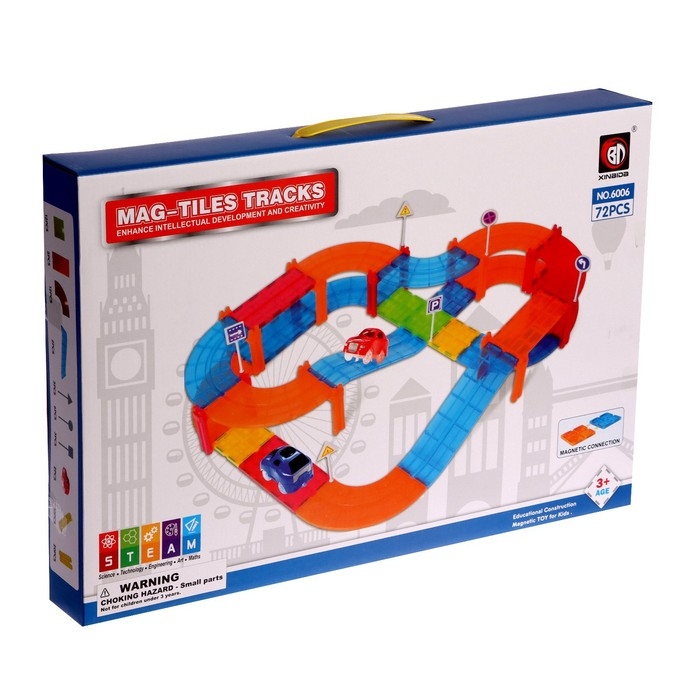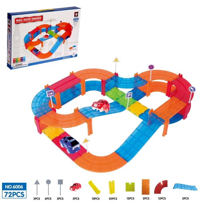 Конструктор магнитный «Магический трек», машинка ездит от батареек, 72 детали