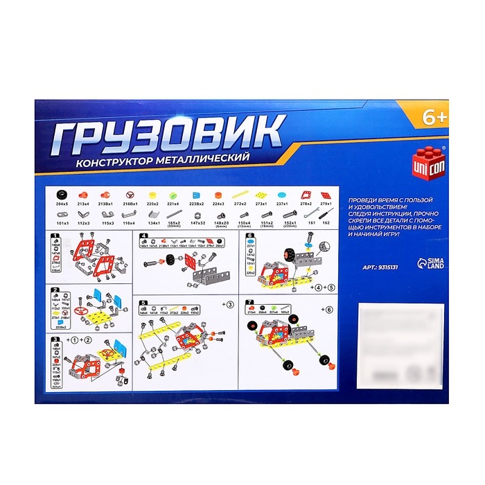 С металлическим конструктором «Грузовик» ребёнок создаст модель специальной машины и сможет поиграть ей! Конструктор состоит из множества деталей, которые крепятся винтиками и гайками с помощью отвёртки и гаечного ключа.