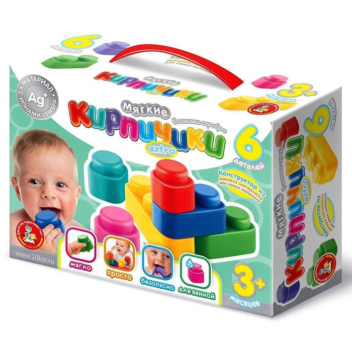 Конструктор «Мягкие кирпичики extra», 6 деталей, с ионами серебра