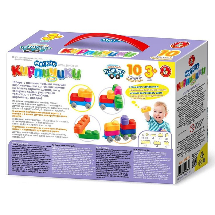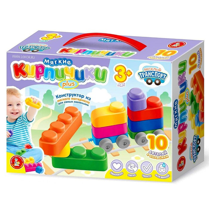 Конструктор «Мягкие кирпичики plus. Весёлый транспорт», 10 деталей, колёсики