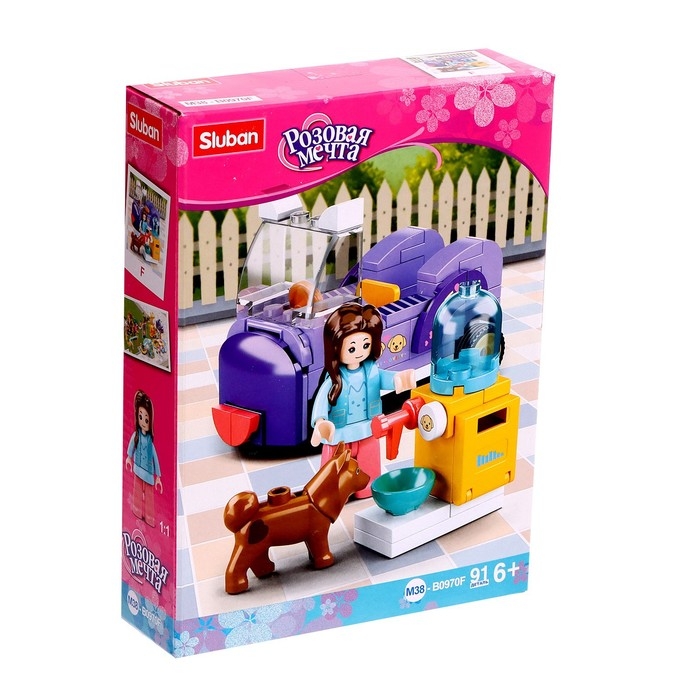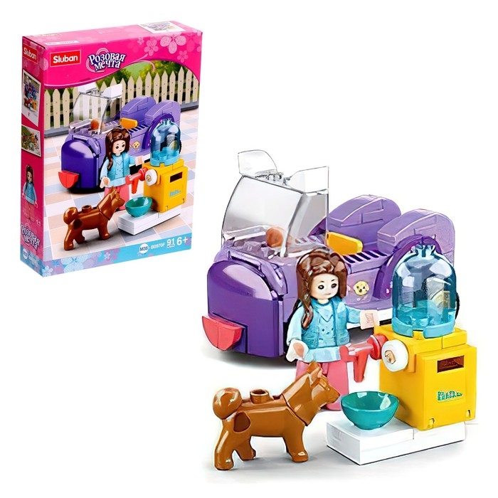 Конструктор Розовая мечта «Поилка для собак и машинка», 91 деталь