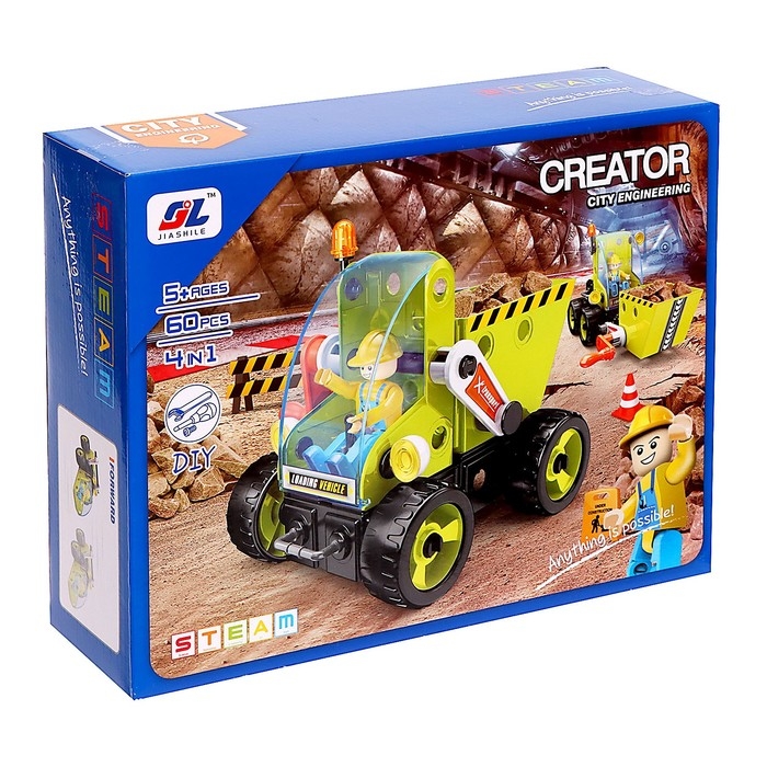 Конструктор Создатель «Строительный транспорт», 4 в 1, 18 деталей