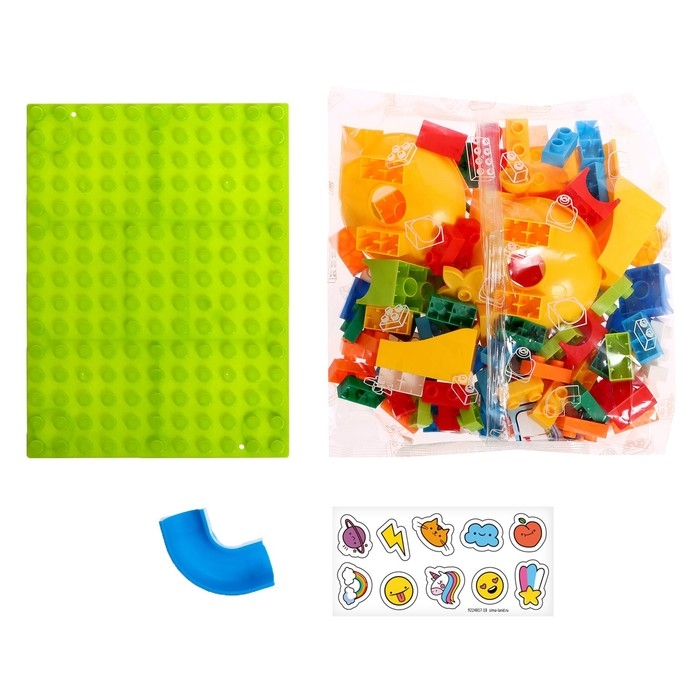 - Набор состоит блочных элементов, разноцветных мостиков и извилистых дорожек. Малыш без труда соорудит трассу любой формы и будет следить за перемещениями шариков.