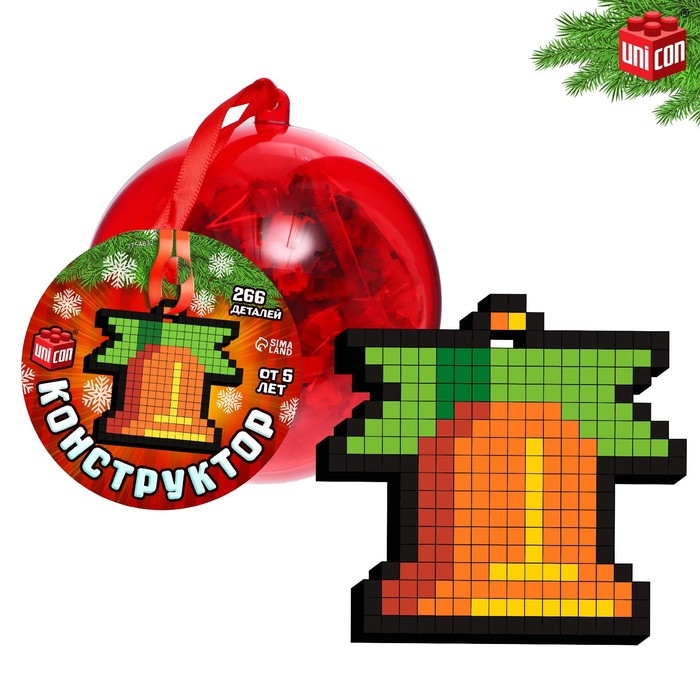Пиксельный конструктор состоит из множества блоков, которые сцепляются между собой. С этим набором ребёнок соберёт новогоднюю композицию и с пользой проведёт время.